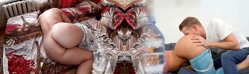 madrastra cachonda fue atrapada por su hijastro y ella lo seduce con sus 2 pollas grandes
